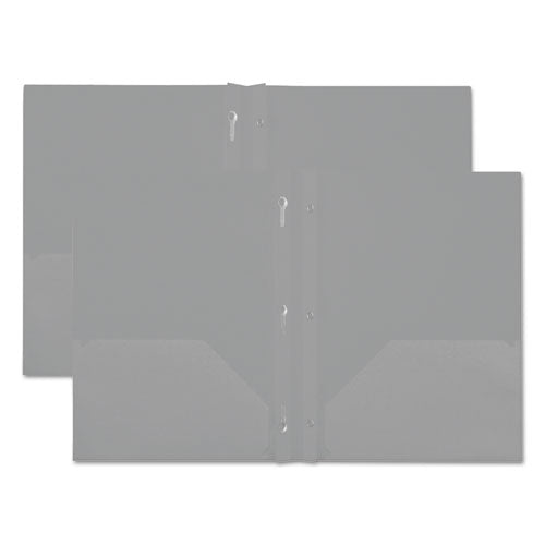 Plastic Twin-pocket Report Covers With 3 Fasteners, 100 Sheets, White, 10-pk