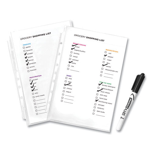 The solution to keeping your important papers protected is clear—diamond clear, in fact. These Heavyweight Sheet Protectors are designed both to protect your papers and show them off impressively. Diamond-clear material delivers a crisp view of your pages as well as durable protection. The acid-free and archival-safe material ensures your pages stay in top condition and that print remains on your papers, rather than transferring to the sheet protector. The clear binding edge rounds out the professional look of your presentations and other documents. Protects seven-hole punched 5 1/2" x 8 1/2" inserts. Load Orientation: Top; Sheet Capacity: 10; Sheet Protector Type: Ring Binder; Insert Size: 8.5 x 5.5.