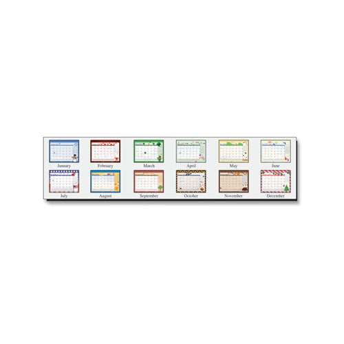 Each month features a different lively design depicting the seasons and holidays for that month. Includes a full-year reference calendar at the bottom of each page plus Julian dates and days remaining. Daily blocks are unruled for open planning. Bound and perforated at the top. Made entirely of recycled materials. Size: 22 x 17; Page Color/Theme: Illustrated Seasons; Edition Year: 2021; Calendar Term: 12-Month (Jan-Dec).