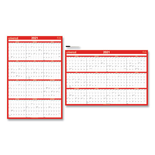 12 months in one view for a full year of monthly planning. Erasable write-on/wipe-off surface lets you easily change plans and is perfect for collaboration. This calendar is printed horizontally on one side and vertically on the other and is erasable, so you can change your schedule as often as needed. Large format allows you to see calendar easily from a distance. Wet-erase marker included. Size: 24 x 36; Page Color/Theme: White/Red; Edition Year: 2021; Calendar Term: 12-Month (Jan-Dec).