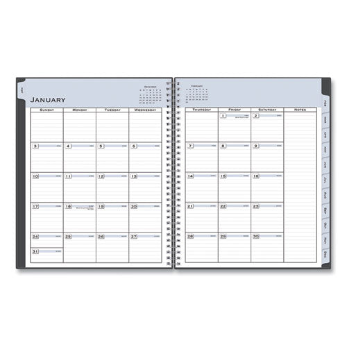 Vertical planner features a timed weekly format from 7 am to 9:45 pm in 15 minute increments for detailed scheduling. Additional two-page-per-month calendar views include a Notes section. Durable, coated monthly calendar tabs help you quickly find your appointments. Thick, premium-quality pages reduce ink bleed-through to ensure your writing stays legible on every page. Clear, double-sided pocket page provides a handy location to store loose papers and notes. Wirebound planner runs from January to December and includes six bonus past monthly views (July-Dec.) for easy yearly transitions. Size: 11 x 8.5; Page Color/Theme: Passages: White/Blue; Appointment Ruling: 15-min, 7 AM to 9:45 PM (Mon-Sun); Edition Year: 2021.