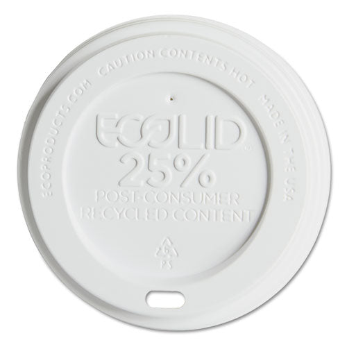 Help keep waste out of landfills with this hot cup lid. Made from 25% post-consumer recycled polystyrene yet performs as well as traditional lids made from virgin plastic. Fits 10-20 oz. Cups. Fits: 10-20 oz Hot Cups; Material(s): Plastic.
