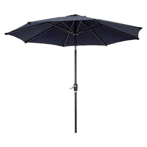 When you need shade pronto for outdoor spaces for hotels, restaurants, and cafes, introduce the Global Industrial™ Outdoor Umbrella with Tilt Mechanism. This commercial umbrella is made of fade-resistant olefin fabric and opens to 8.5 ft to provide plenty of shade. Sturdy black powder-coated aluminum pole comes in 2 pieces which snap in together for easy assembly. Eight aluminum ribs on the underside keep the umbrella steady during sporadic windy conditions. Crank-lever makes it easy to set up and open. Tilt-button allows you to shade your area throughout the day. Fade-resistant for up to 1,000 hours.