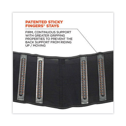 For high-performance back support, this brand's high-performance option may be tough to beat. The ProFlex 2000SF High-Performance Spandex Back Support Brace is designed to remind workers of proper lifting techniques, while enhancing the body's intra-abdominal pressure to move stress away from the spine to minimize the potential for back-pain. Comfort-stretch, premium 840D spandex body material and a unique, extra-wide, 8.5" V-shaped waistbelt ensures that the support brace works with, rather than against, the wearer throughout the toughest days, even those days where the bending, twisting, lifting and schlepping never seems to end. Ultra-flexible, stretchable bias binding features zig-zag stitching for enhanced strength. Before lifting heavy objects, simply tighten the support belt to enhance the body’s intra-abdominal pressure; and after lifting, just loosen the belt to achieve a wider range of motion. Innovative Power Panel Positioners keep the tension bands close-to-hand, making it easy to get the desired level of tension to meet the current task. Non-conductive Sticky Fingers stays help ensure long-lasting integrity. Adjustable, removable shoulder straps keep the belt on standby until the next lift while allowing the wearer to tailor the shoulder-fit to his or her unique needs. For best results, the support belt should fit snugly around the wearer's hips, with the front of the support two-fingers below the wearer's navel. When worn correctly, workers can easily maintain the proper posture for lifting, while achieving the extra support required to safely complete the task. Easy-to-use hook-and-loop closure keeps the belt securely fastened while in use. Brace can be worn over or underneath clothing. Machine washable—machine-wash cold and air dry.