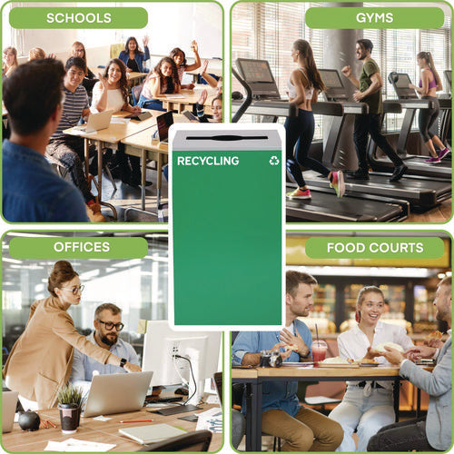 With a generous 29-gallon capacity, this bin is perfect for use in any environment - from homes to offices, schools, and more. It can handle high-volume foot traffic and require less emptying from your maintenance staff. We've crafted our bins from durable powder-coated steel to ensure they're built to last, even with heavy use. Its included removable plastic liner will prevent leaks from seeping out and is a cinch to clean when needed. In addition, we have color options allowing you to design a streamlined color-coordinated waste disposal system. As an added benefit, the equipped feet are great for lifting the receptacles off the ground, so you can easily clean around them without worrying about a ring developing. You can have a trash and recycling station as large or as small as needed and can completely customize it with the included stickers. The included lids enhance the appearance of your disposal system and keep your trash secure and protected. By providing options for proper disposal of compost, recycling, and trash, you're helping prevent it from ending up on the ground.