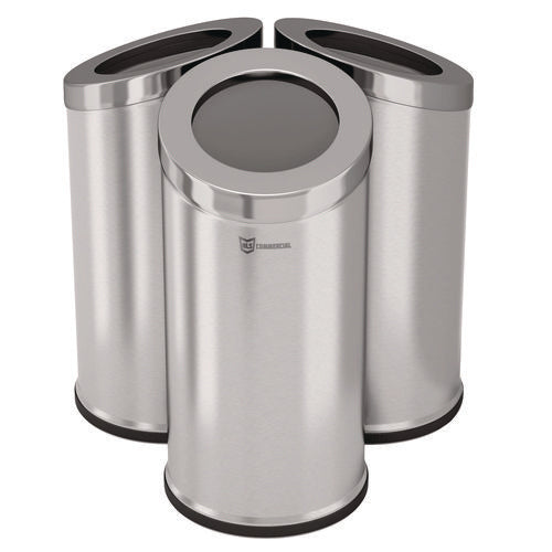 Beveled Open Top Trash Can, 15 Gal, Stainless Steel, Silver