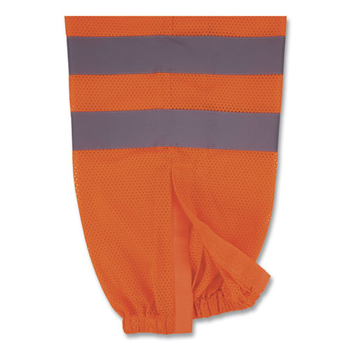 Class E hi-vis cool mesh pants have wide leg openings with hook and loop for easy off and on. Features 2" ANSI-compliant reflective, a drawstring waist and one right leg cargo pocket.