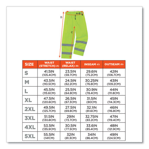 Class E thermal pants have a weatherproof polyester outer shell with a breathable 3M thinsulate lining for warmth and waterproof comfort. Features a 2" ANSI-compliant 3M Scotchlite Reflective and one right leg cargo pocket. Elastic waist with a drawstring guarantee a perfect fit and zippered leg openings offer an easy on/off.