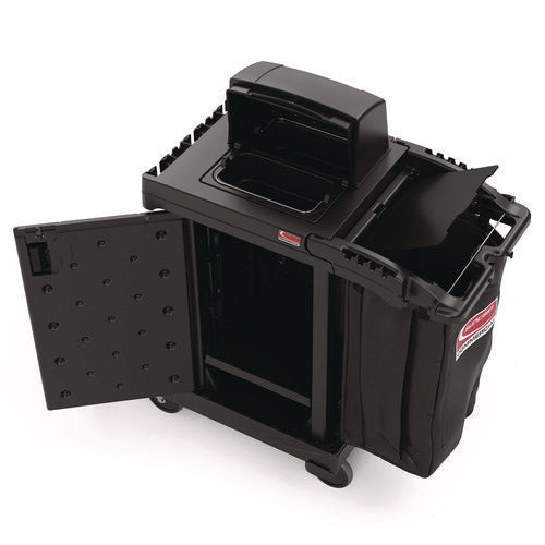 High Security Housekeeping Cart, Plastic, 1 Shelf, 3 Bins, 23.19 X 53.23 X 53.02, Black