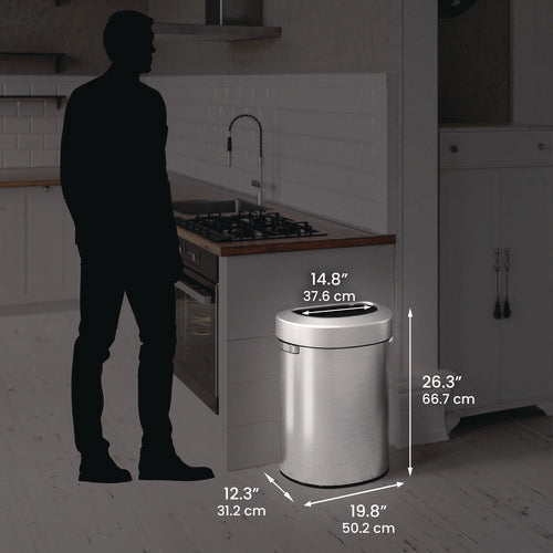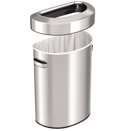 Open Top Trash Can, Half-round, 18 Gal, Plastic/stainless Steel, Silver