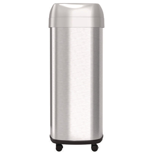Open Top Trash Can With Wheels, Oval, 16 Gal, Plastic/stainless Steel, Silver