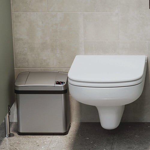 Rectangular Sensor Trash Can, 2.5 Gal, Plastic, Silver