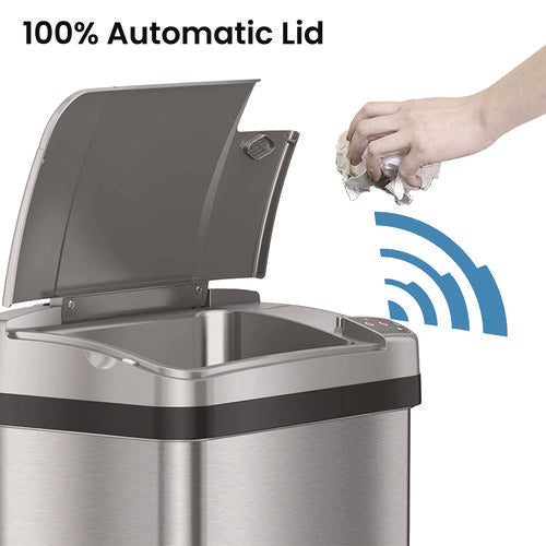 Rectangular Sensor Trash Can, 4 Gal, Plastic/stainless Steel, Silver