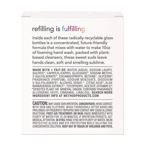 Concentrated foaming hand soap refill is perfect for everyday use. Diluted formula is dermatologist tested for sensitive skin and made with plant-based cleaners. Made without parabens or phthalates. Cruelty free, tested by people, not on animals.
