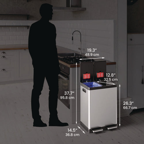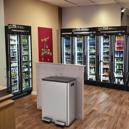 Enhance your commercial space with our durable and attractive step pedal trash can and recycle bin. Designed for use in hospitality, retail, food service, and other high-traffic environments, these bins feature a soft and silent lid close along with smooth, easy pedal operation for effortless use. The removable inner bucket simplifies emptying, while an odor filter ensures the surrounding area remains fresh and clean. Crafted from durable stainless steel and equipped with a carry handle for easy mobility, these bins combine functionality and style to meet the demands of any professional setting. Upgrade your waste management today with these practical and elegant solutions.