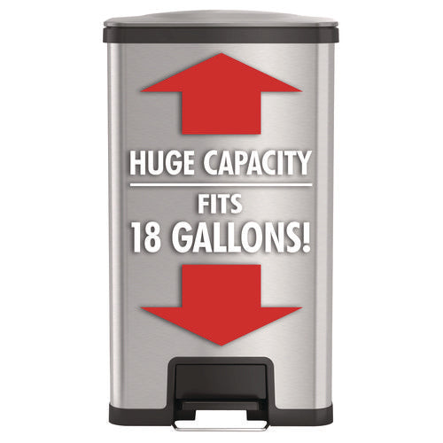 Step Pedal Trash Can With Airstep Technology, 18 Gal, Stainless Steel, Silver