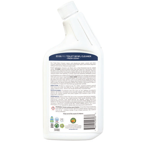 Formulated with cedar oil and citric acid, this Toilet Bowl Cleaner effectively cleans, freshens and fights odors in toilets, urinals, and other ceramic bathroom surfaces. Thick clinging gel removes hard water stains, rust, and mineral deposits without harsh fumes. The formula is made using sustainable, plant-powered ingredients. Made without dyes; graywater and septic safe. Not tested on animals.
