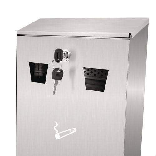 The all-in-one Alpine Industries Wall-Mounted Safe Cigarette Disposal Station is the perfect solution to reducing litter in public areas and at entrances to smoke-free facilities. Constructed of weather- and fire-resistant steel with two extinguishing screens to help avoid the unpleasant odor of smoldering smokes. Easy access to clean the storage receptacle with lock and key. You can quickly install this cigarette disposal urn onto any exterior flat surface with the supplied hardware. When full, you can easily access and clean the storage receptacle via the lock. This interior bin can be simply removed and emptied, making content removal quicker, cleaner and more efficient. Built to last, the Alpine Disposal Station is durably made using a rugged, stainless steel housing to provide long-lasting strength and use for years to come. This weather- and fire-resistant material not only holds up against everyday wear and tear, but it can also withstand harsh environmental conditions to ensure long-term durability. Place this clean-looking, wall-mounted cigarette urn at an entrance or exit to a smoke-free area or another designated smoking area to keep everyone happy.