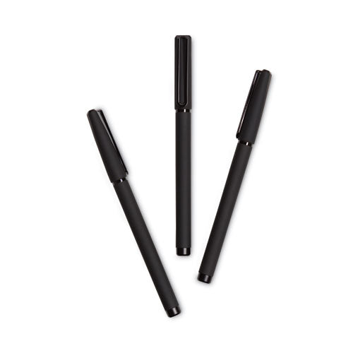 These pens are designed to deliver both style and elegance without sacrificing exceptional function. A matte black exterior with black accent hardware adds some extra chic to your work day. The pen barrel is coated with a soft touch lamination film providing a comfortable hold for note-taking.