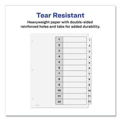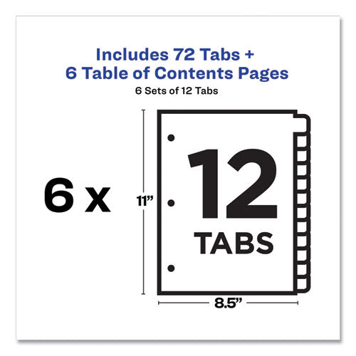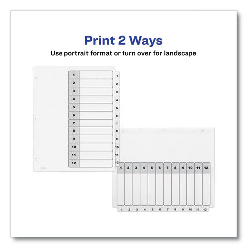Customizable Table Of Contents Ready Index Black And White Dividers, 12-tab, 1 To 12, 11 X 8.5, 6 Sets