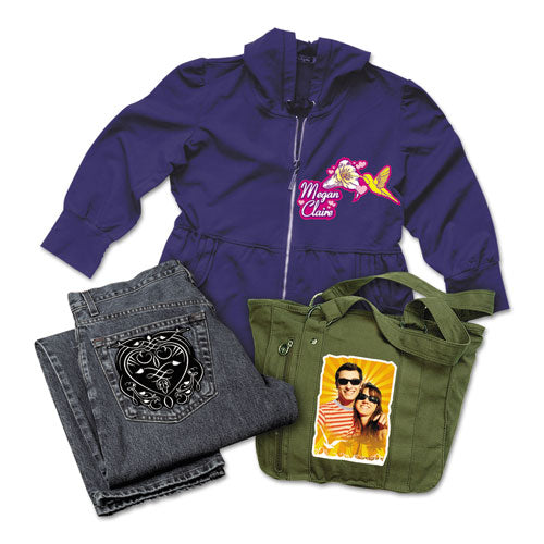 Create, personalize and customize your own fabric transfers. Ideal for t-shirts, aprons, pillowcases, bags, tank tops, promotional items and more. Crack-free transfer's color lasts longer so you can enjoy your creations even more. All you need is a computer, a printer that allows you to flip images and a household iron. For use on 100% cotton or cotton poly/spandex blend fabrics. Easy to customize with complimentary designs and templates from Avery® Design & Print. For laser and inkjet printers. For Dark-Colored Fabrics. Sheet/Roll Size: 8.5 x 11; Paper/Media Color(s): White; Color Family: White; Paper Finish: Matte.