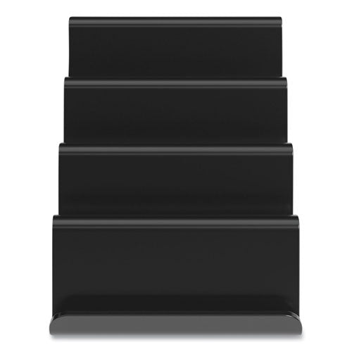 Four Compartment Business Card Holder, Holds 100 Cards, 3.9 X 6.3 X 4, Plastic, Black