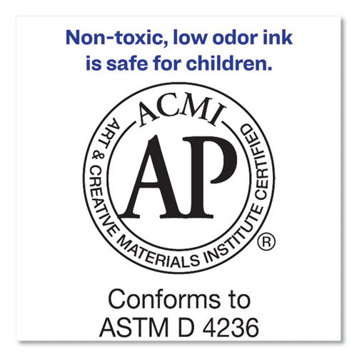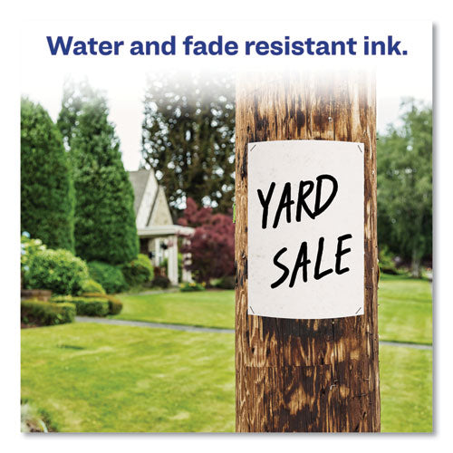Jot down ideas with ease with this Large Permanent Marker. The bullet tip ensures a consistent line width every time you write for strokes that are strong and steady. The ink is low-odor and certified nontoxic. Quick-drying permanent ink resists rubbing, water damage and fading to keep its bold appearance over time. Keep the marker close at hand with the metal pocket clip and it's ready whenever you need to make your mark. Marker Ink Type: Permanent; Marker Tip Type: Bullet; Marker Tip Size (text): Broad; Marker Tip Size (numeric): 4.8 mm.