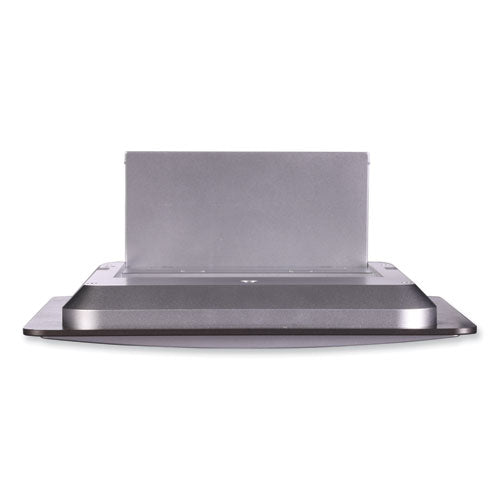 Injection-molded, radio-controlled digital wall clock has a two-tone finish of charcoal gray and metallic silver. The radio-controlled clock sets automatically and adjusts for Daylight Savings Time. Large 2.25" numerals display the time. Choice of 12- or 24-hour time format display. Displays the month, date, day of the week, and indoor temperature in Fahrenheit or Celsius. Folding stand for tabletop use. Quartz, battery-operated, radio-controlled clock with alarm requires two AA batteries (not included).