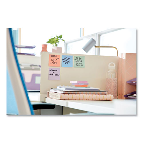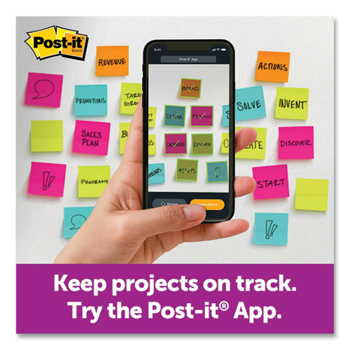 Super Sticky adhesive lets you leave your note on almost any vertical surface. Ideal for keeping your thoughts in sync and ensuring that even the busiest person knows what you need. Pad Type: Super-Sticky; Sheet Size (W x H): 3 x 3; Number of Sheets per Pad: 65; Ruling: Plain.