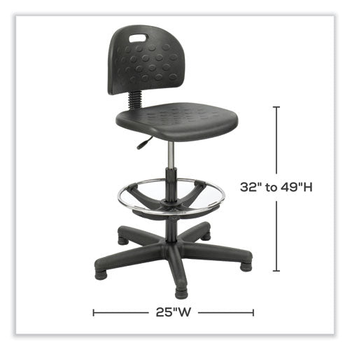 The Soft Tough™ Economy Workbench Chair is an adjustable-height chair with 10" height range adjustment. The polyurethane stool features a durable seat and back, perfect for industrial or lab settings. Optional 2" carpet or hard floor casters (sold separately).
