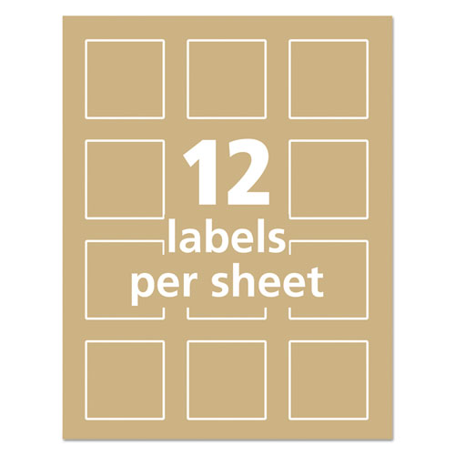 Square Print-to-the-edge Labels, Inkjet-laser Printers, 2 X 2, Kraft Brown, 12-sheet, 25 Sheets-pack