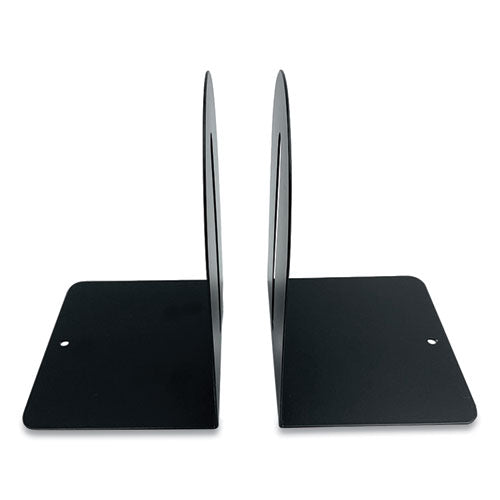 Steel bookends keep you organized and support your books, binders, magazines and more with strength and stability. Non-skid surface keeps them in place. Can be used alone or mixed and matched with other coordinating Huron accessories. Fashion Style. Material(s): Steel; Color(s): Black; Finish: Scratch- and Chip-Resistant; Height: 7.25".