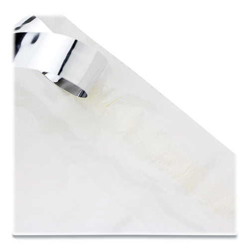 Designed to deliver ultimate packaging results. Ready-to-ship e-commerce bag features metalized, antistatic release liner for reduced static and a steady pull. Adhesive strip on the top provides a reliable and permanent closure. Stainless steel wicket aids in keeping bags neat and allows bags to be hung for quicker loading. Perforated header allows effortless bag hanging and removal from the wicket. Trilingual suffocation warning. Application: E-Commerce; Thickness: 1.5 mil; Material(s): Low-Density Polyethylene; Width: 9".