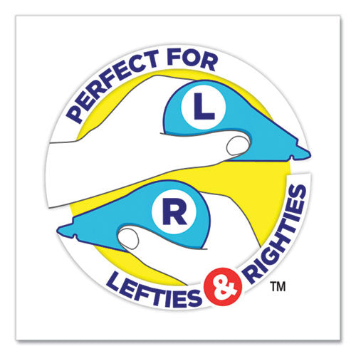 Convenient mini size. The integrated twist cap guards against tearing, and the tape itself is tear-resistant and film-based. Fixes mistakes fast. It's great for the home, school or office. Write or type over it immediately after you use it. 3 Per Pack—One blue, one purple and one yellow dispenser per pack. Correction Tape Type: Non-Refillable; Line Coverage: 1; Tape Width: 0.2"; Tape Length: 314.4".