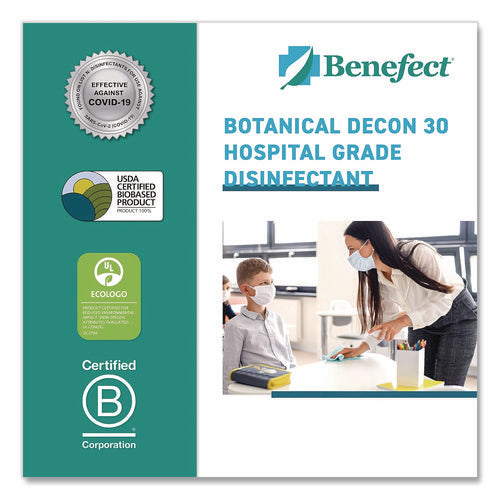 An innovative one-step disinfectant cleaner specially formulated for the majority of water damage restoration jobs. Uses the same botanical active ingredient Benefect is known for, thymol. Typical disinfectants require 10-minute contact time, which is difficult to achieve on vertical surfaces and materials. New Botanical Decon 30 solves this problem by being specially formulated to kill gram-negative and gram-positive bacteria with a more realistic contact time of just 30 seconds. From pipes bursting to dishwashers leaking, many water loss jobs happen in the kitchen. The cleaner is a food surface contact sanitizer, which means restorers can decontaminate sensitive kitchen surfaces without rinsing, wiping, or leaving behind synthetic chemical residue. Benefect Botanical Decon 30 combines powerful botanical cleaning surfactants with the proven killing ability of Benefect's active ingredient to clean and disinfect in one easy step. This makes Botanical Decon 30 perfectly suited for general decontamination of remediation sites, equipment, and contents.