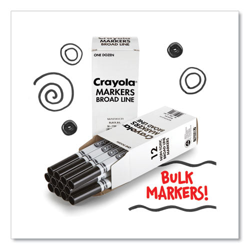 Bulk Broad Line Marker, Broad Bullet Tip, Black, 12/box