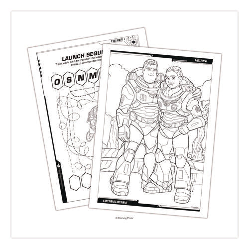 Join Buzz, Alisha, Sox and the crew on a coloring adventure with the Disney® Pixar® Lightyear Jumbo Coloring & Activity Book. Chock-full of coloring pages, games and puzzles along with a bonus punch-out, standup character lifted from the animated science-fiction, action-adventure film, this book provides plenty of fun activities to keep creative children engaged. Afterwards, the coloring-pages' Tear and Share® design makes showcasing your little artist's masterpieces a snap. Officially licensed product.
