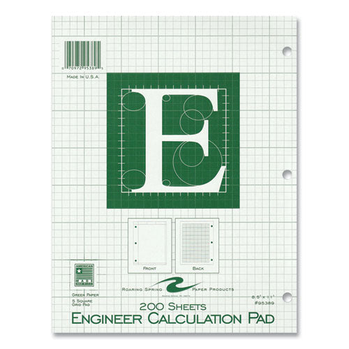 Engineer Pad, (0.5" Margins), Quad Rule (5 Sq/in, 1 Sq/in), 200 Lt Green 8.5x11 Sheets/pad, 12/ct, Ships In 4-6 Business Days