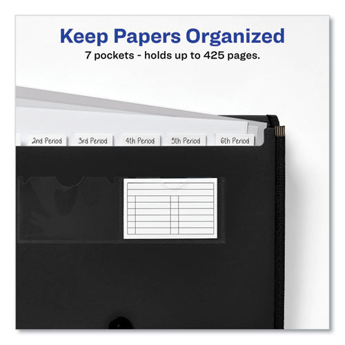 Expanding File Folder Organizer, 7 Sections, Hook/loop Closure, Letter Size, Black