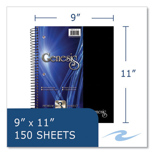 Genesis Notebook, 3-subject, Medium/college Rule, Randomly Asst Cover Color, (150) 11x9 Sheets, 12/ct, Ships In 4-6 Bus Days
