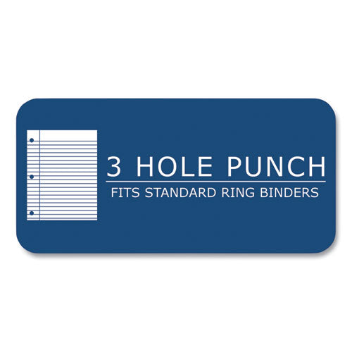 Enjoy smooth 15-lb writing paper that is college-ruled with a red margin line to keep your notes neat and clean. Sheets are micro-perforated for easy and clean tear-out to 11" x 8.5". Covers are produced from durable 19-pt poly. The back cover is a heavy-duty 50-pt chipboard. One double storage pocket is located under the front cover for easy storage of papers. Wire ends are coil-locked for snag-proof performance.