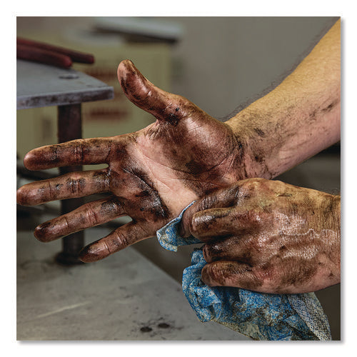 These towels combine an advanced cleaning formula with a strong, dual-textured towel to thoroughly clean hands and surfaces ANYWHERE, ANYPLACE, ANYTIME! The clean, citrus-scented formula loosens and dissolves industrial soils while leaving hands free from dryness and irritation. The Rough Touch blue towel locks in soil to prevent it from transferring back onto hands and surfaces. Hands are left feeling clean with no sticky residue and no rinsing required.