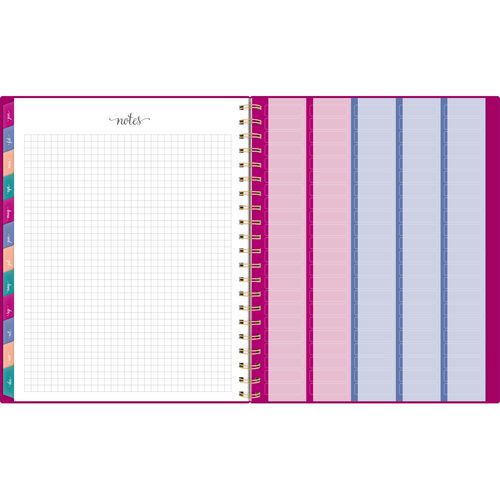 Keep it all together in Harmony this year. The Harmony Weekly/Monthly planner provides the unique layouts and special pages you need to capture just about every aspect of your life, so you can focus on the things that matter. Weekly spreads feature plenty of space for each day as well as dedicated areas for your week's goals, wins, to-dos and more. Tabbed for easy navigation, each monthly spread features unruled daily blocks along with areas for the month's goals, to-dos, notes and ideas. In the back of the book, a wide range of resources along with both formatted and unformatted notes and planning pages help you do everything from prioritizing your biggest projects to finding the perfect gifts for the special people in your life. Color-coded repositionable stickers make it easy to add and remove eye-catching notes to all of your important projects, events, appointments and more. Durable, stylish poly cover with gold twin-wire binding adds an element of gratifying sophistication to every practical task, and the double-sided interior pocket hangs onto any loose materials you’d like to keep close. Printed on high-quality paper for superior ink-bleed resistance.