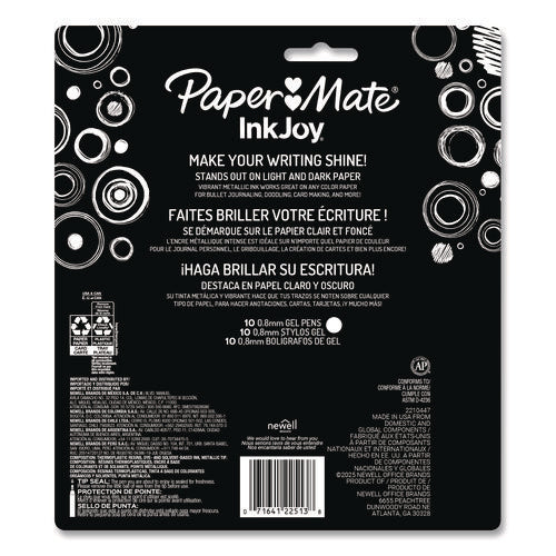 Make your writing shine with Paper Mate® InkJoy Gel Metallic Pens, featuring ink that shimmers on both light and dark paper. From the #1 assorted gel pen brand, these InkJoy pens have a bright and smooth ink that keeps the joy flowing as fast as your thoughts. Plus, they come fully wrapped with a comfort grip, for an enjoyable writing experience throughout. Brighten up your daily writing tasks, homework, journaling and more.