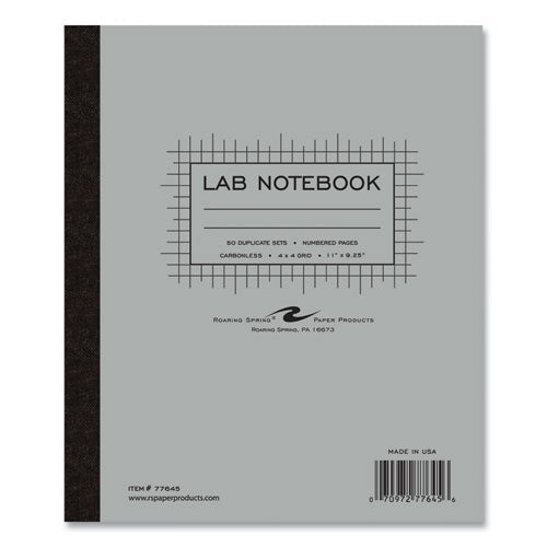 Lab And Science Carbonless Notebook, Quad Rule (4 Sq/in), Gray Cover, (100) 11x9.25 Sheets, 12/ct, Ships In 4-6 Business Days