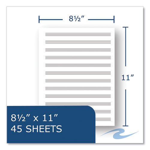 Document your musical musings with this notebook. Each book is 11 x 8.5 and features 12 staves of printed music paper format on each sheet. The smooth, white writing paper is an extra heavy 24-lb basis weight. There are 32 sheets of paper in each book. The cover is a printed white board. Wire ends are coil-locked for snag-proof performance.