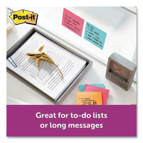 Post-it® Super Sticky Notes have 2X the sticking power to help you organize and keep on top of any project. Colors are from our Supernova Neons collection. Ideas are out of this world with the electric colors of the Supernova Neon collection. Sort your project by color and subject, and accomplish more. Post-it® Super Sticky Notes are recyclable and stick again and again and allow to move your notes with you throughout your day.