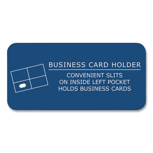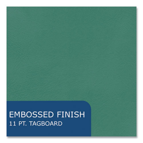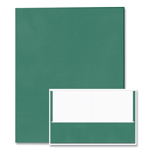 These folders have an embossed leatherette finish. The color is printed on durable white tag stock. Two inside pockets keep papers in place.