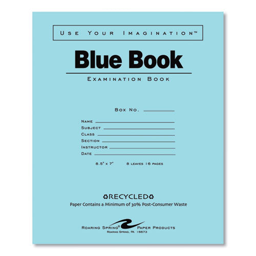 Recycled Exam Book, Wide/legal Rule, Blue Cover, (8) 8.5 X 7 Sheets, 600/carton, Ships In 4-6 Business Days