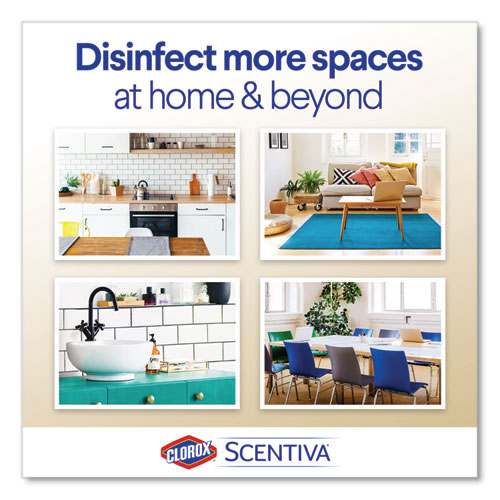 Clorox® Scentiva® Multi Surface Cleaner combine the trusted cleaning and disinfection power of Clorox® with a captivating scent to transform your entire home. Clorox® Scentiva® scents are well-crafted, curated, inviting blends that will elevate your cleaning experience. This cleaning spray is bleach-free and multi-purpose and powers through tough grease and grime with ease. Use this disinfecting spray for toilets, tubs, cabinets and floors. Utilize this all-purpose cleaner to cut down on your necessary cleaning supplies and quickly spray away an array of messes. Safe to use on most surfaces and around pet areas, Clorox® Scentiva® Disinfectant Spray cleaner eliminates 99.9% of germs while filling your home with uplifting, long-lasting scents. Ideal for use in offices, schools, daycare centers, restaurants, hotels and other commercial facilities. Great for everyday and seasonal cleaning like Spring Cleaning, Back to School and Cold and Flu season.